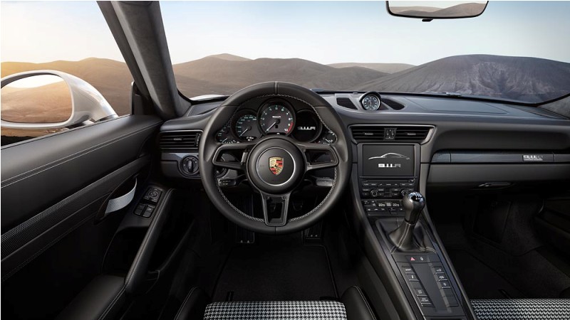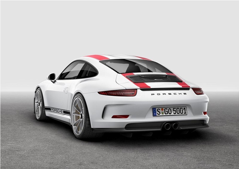 * Ultra High Performance Tyres are mounted on forged 20-inch lightweight wheels, boasting 245 millimetres at the front and 305 millimetres at the rear. * Motorsport development has specially adapted the control systems of the Porsche Stability Management (PSM) for the 911 R. A double-declutch function can be activated by pressing a button for seamless gearshifts when changing down, along with the optional single-mass flywheel, which results in a significant improvement in spontaneity and high-revving dynamics of the engine. * From the exterior, the 911 R bears greater resemblance to the 911 Carerra than any other model. Characteristic details such as the rear body, front and rear apron and nose bear similarities to the 911 GT3, hinting that it originates from the motorsport department in Flacht, Germany The body is comprised of lightweight components that originate from the 911 GT3, which can be altered for road use.