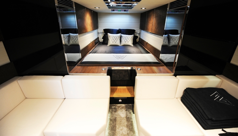 Here's one that’s going to wow you this yachting season. The yacht designed by Halit Yukay from the Mazu Yachts will be showcased at the upcoming Monaco Yacht Showm September 27-30, 2017. Already sold to a Europeon owner in Saint Tropez, this sexy, Mazu 38 Soft Top from Turkey was given a military look combining with luxury and trendy according to the request of its owner. The yard decided to use as many different textures of leathers and fabrics as possible - all from Foglizzo and a number of mirrors to give the maximum depth interiors perception, like in the loft condo. New Mazu 38 soft top is equipped with two Volvo Penta IPS 400 engines and the boat can reach a top speed of 34 knots according to the yard.