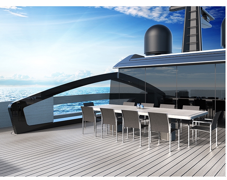 The Tankoa S533 Saetta is a 53 meter long model characterized by their widespread use of glass surfaces, giving the owner and his guests the possibility to fully live the surrounding environment with nothing that interrupts their direct contact with the sea. The yacht also gives a sense of the vast exterior while connecting with the sea.
