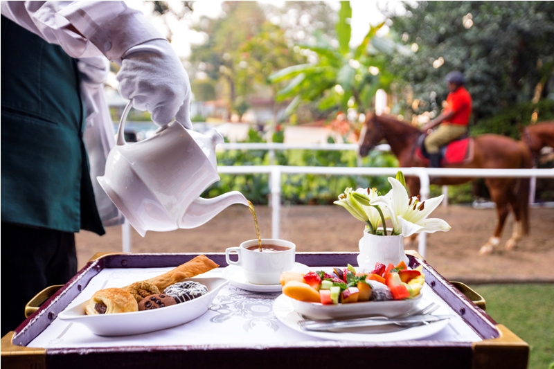 The rooms we stayed in were luxurious needless to say. During our overnight stay we chose to eat at the fully packed La Kuchina Italian restaurant. The palace has options of multi cuisine restaurant Shanama, Under the Mango Tree for grills and barbeque, the beautiful and popular The Cafechino where you can sip coffee and see the green beauty and the heritage mix in a stunning blend and Shergar Bar among others. If you love the Nawabi cuisine, the juicy kebabs and the biryani make sure you visit the Shanama to get the real taste of Bhopali food. Next morning we woke up to horses trotting right under our window which was an amazing sight. Later we were told the horses, part of the palace's heritage, were being given their morning exercise on the beautiful pathway within the palace meant specially for them. This was told to us by the dashing young General Manager Gaurav Rege seen below with his cute daugher who gave us the history over breakfast.